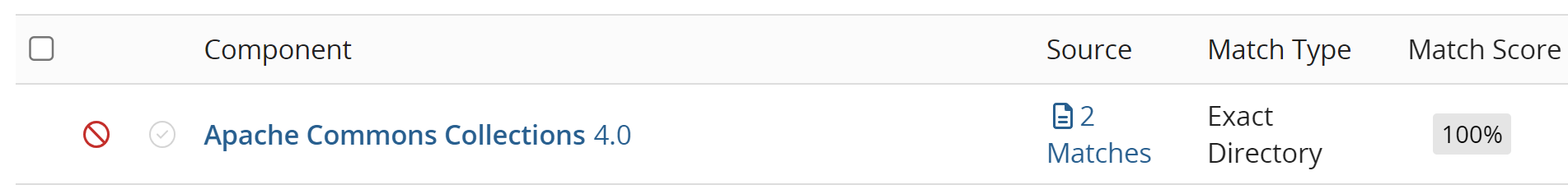 For automatic matches, the number of files that were identified in the component scan and matched to this version of the component appears. Select the text to open the Source tab.