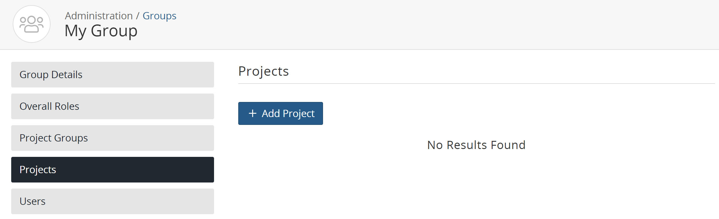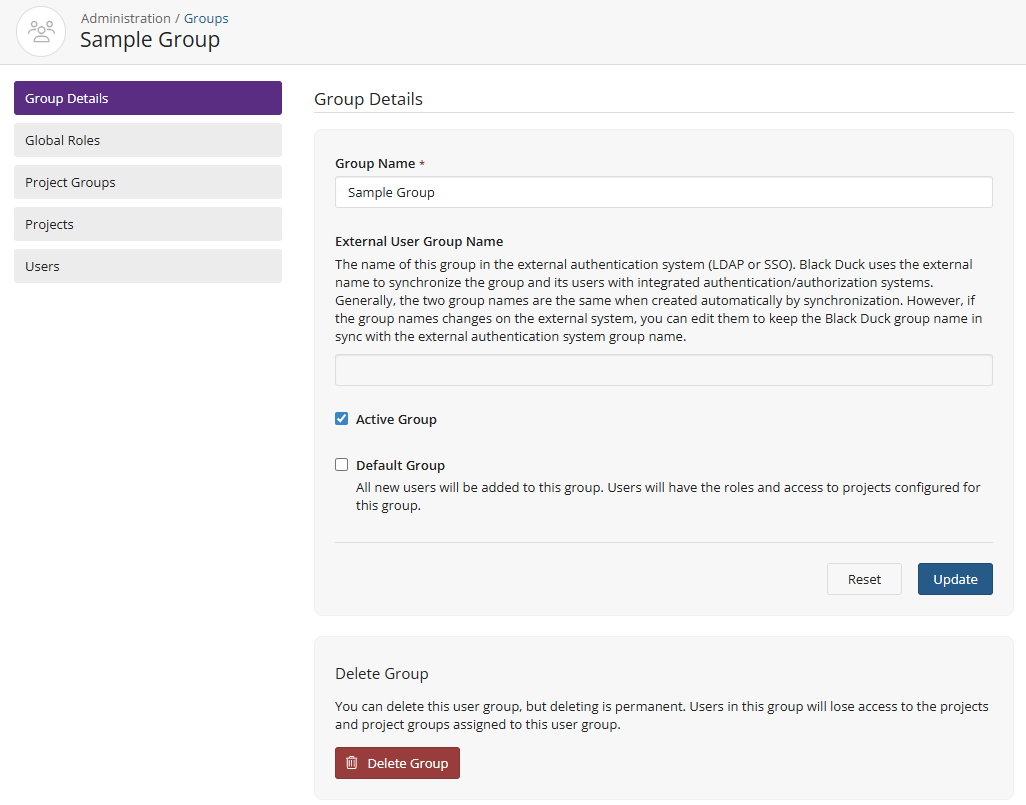 You can manage the projects assigned to a user group using the Group Name page.